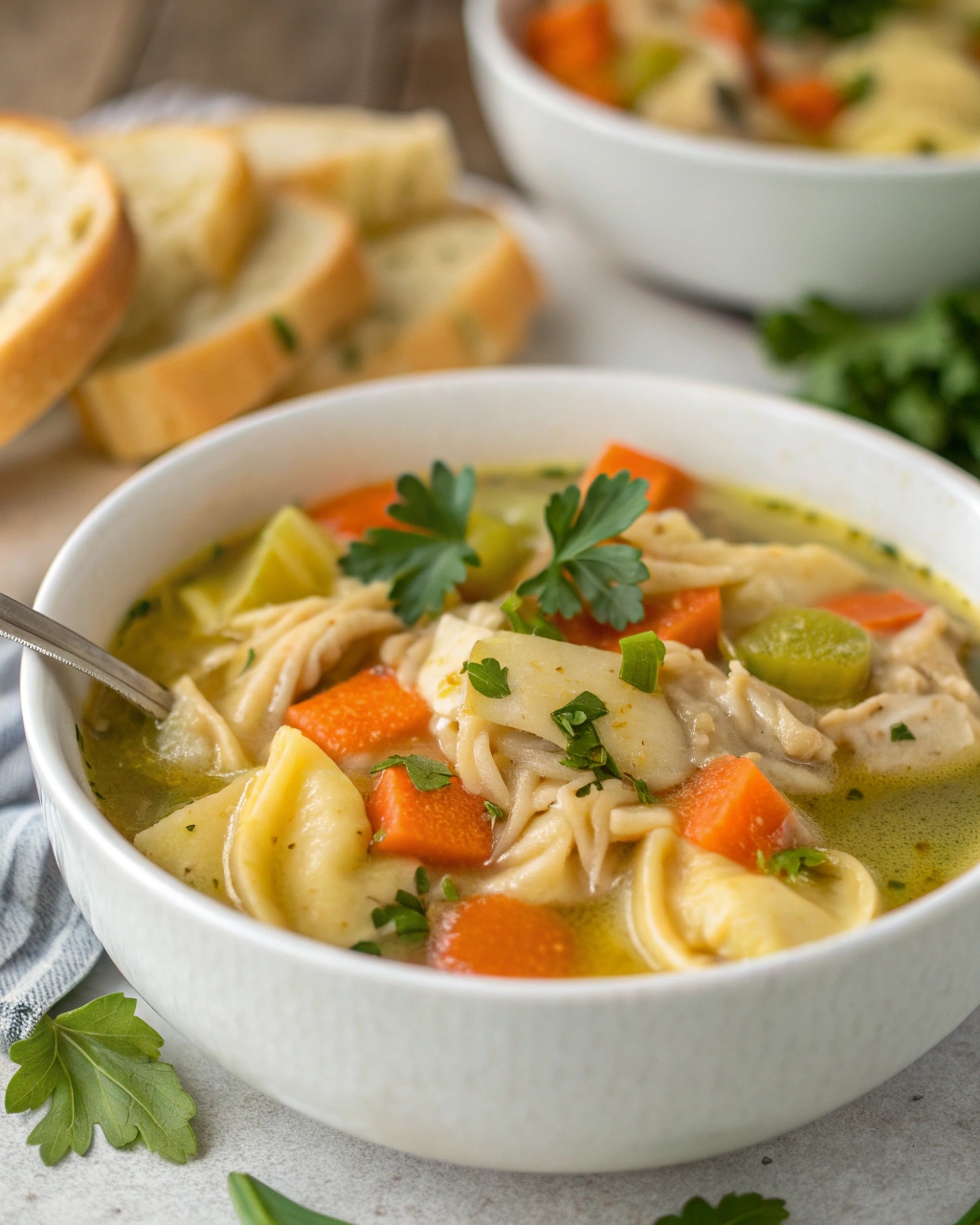 This Slow Cooker Chicken Tortellini Soup is the ultimate bowl of comfort. Juicy chicken, tender veggies, and cheesy tortellini are simmered together in a perfectly seasoned broth for hours — creating a rich, hearty flavor that feels like home. It’s easy, wholesome, and absolutely satisfying, making it perfect for chilly nights or busy weeknights when you need a warm, filling meal.