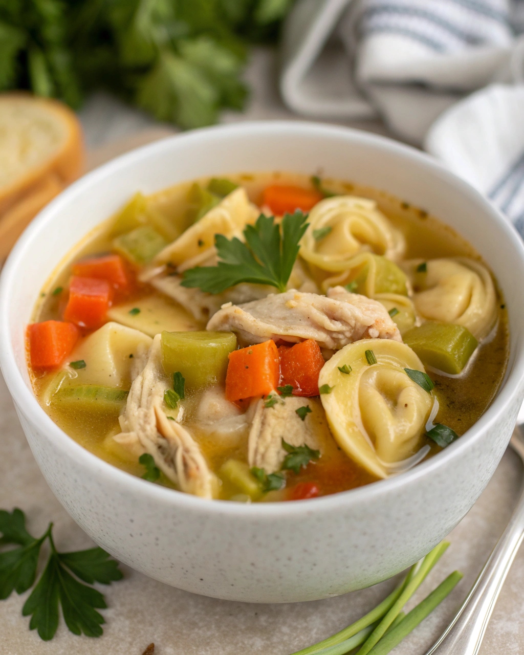 You’ll adore this Chicken Tortellini Soup because it’s hearty, flavorful, and effortless. The slow cooker does all the work — infusing the chicken and vegetables with deep, savory flavor while keeping the tortellini perfectly tender.