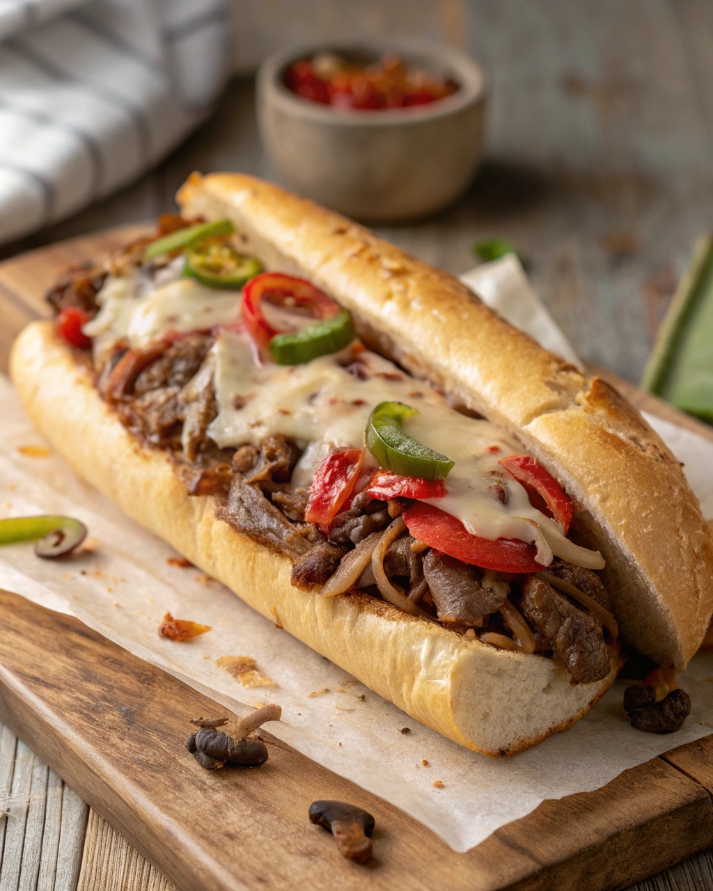 As it simmers, the meat becomes so tender it practically shreds apart, while onions, mushrooms, and bell peppers soak up all that deliciousness. Once piled high on toasted hoagie rolls and topped with melty provolone or classic Cheez Whiz, you’ve got a sandwich that rivals any restaurant version.