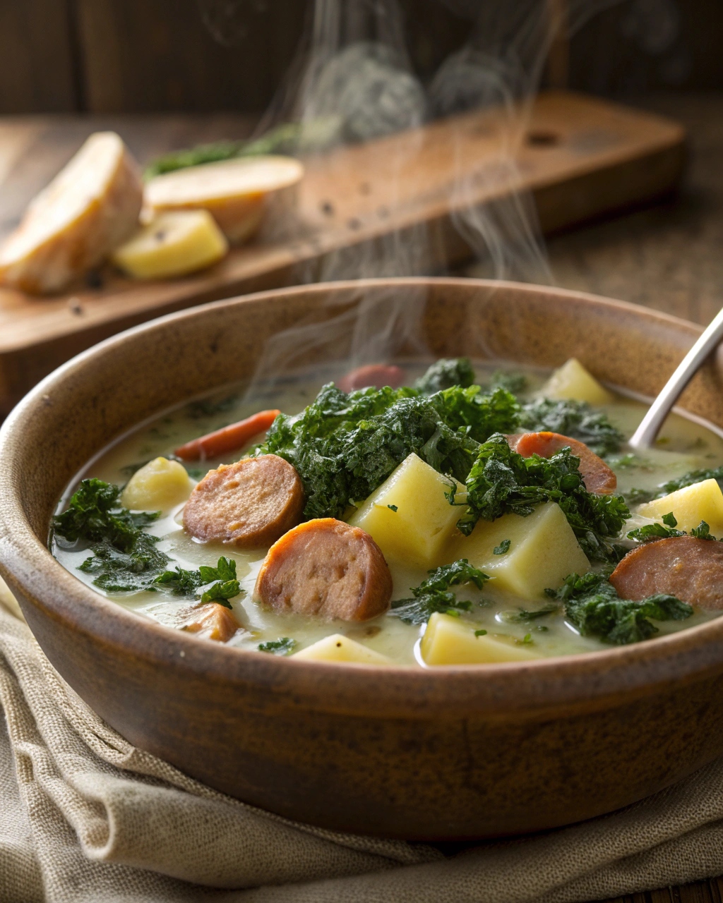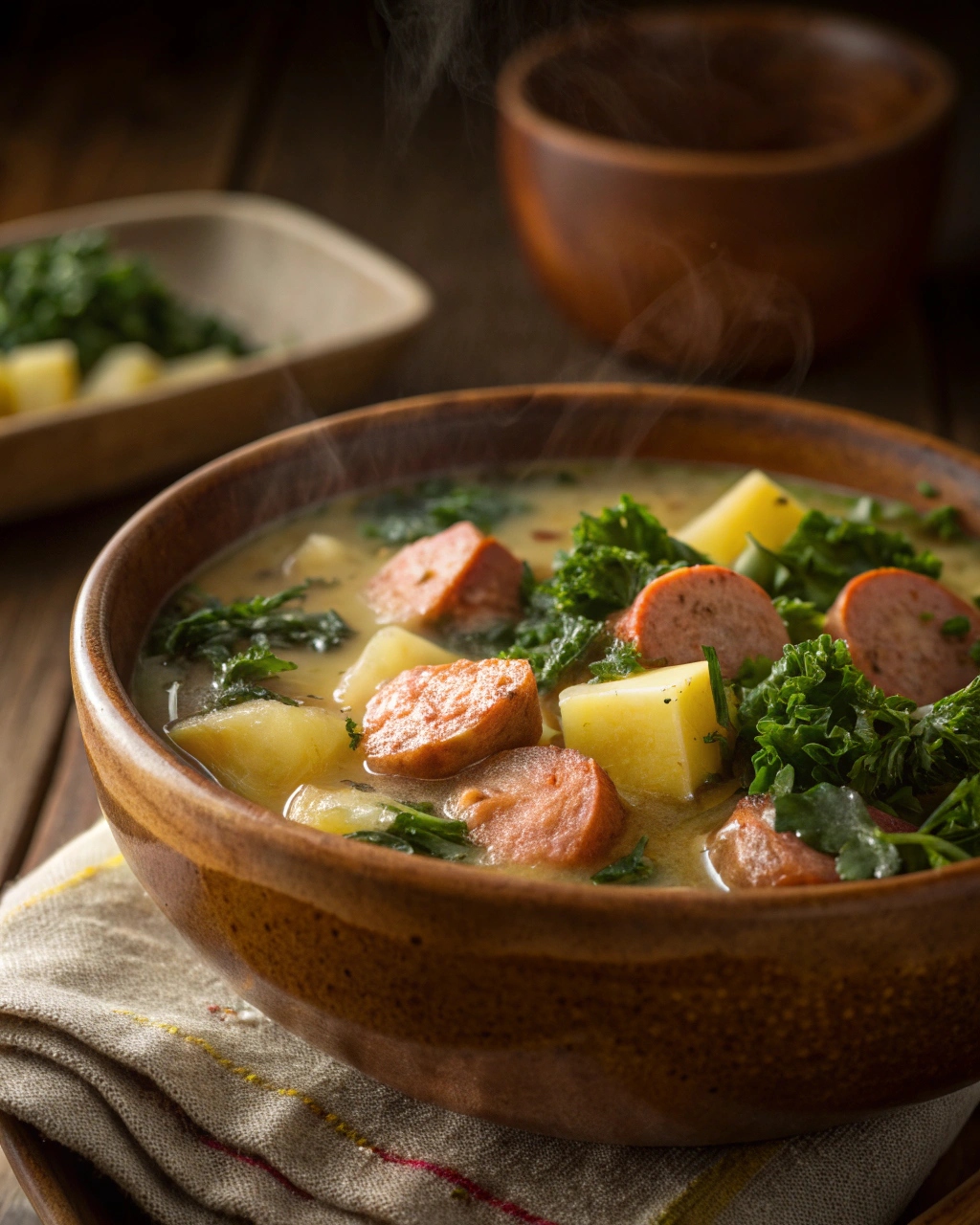 Comforting and hearty: Creamy potatoes, smoky sausage, and tender kale make each spoonful satisfying.