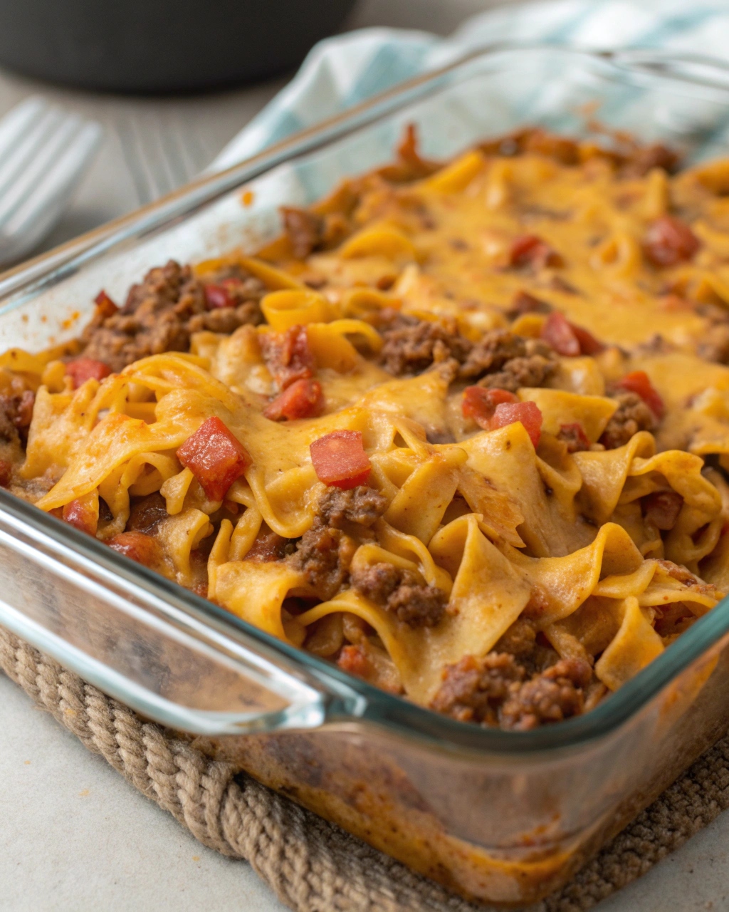 You’ll love this taco noodle bake because it delivers everything you crave in a comfort food casserole—rich flavor, creamy texture, and simple ingredients—all in one pan. It’s quick to assemble, budget-friendly, and endlessly customizable. The combination of taco-seasoned beef, cheesy noodles, and tangy Rotel makes it a guaranteed crowd-pleaser for kids and adults alike, while leftovers reheat beautifully for easy meals all week long.