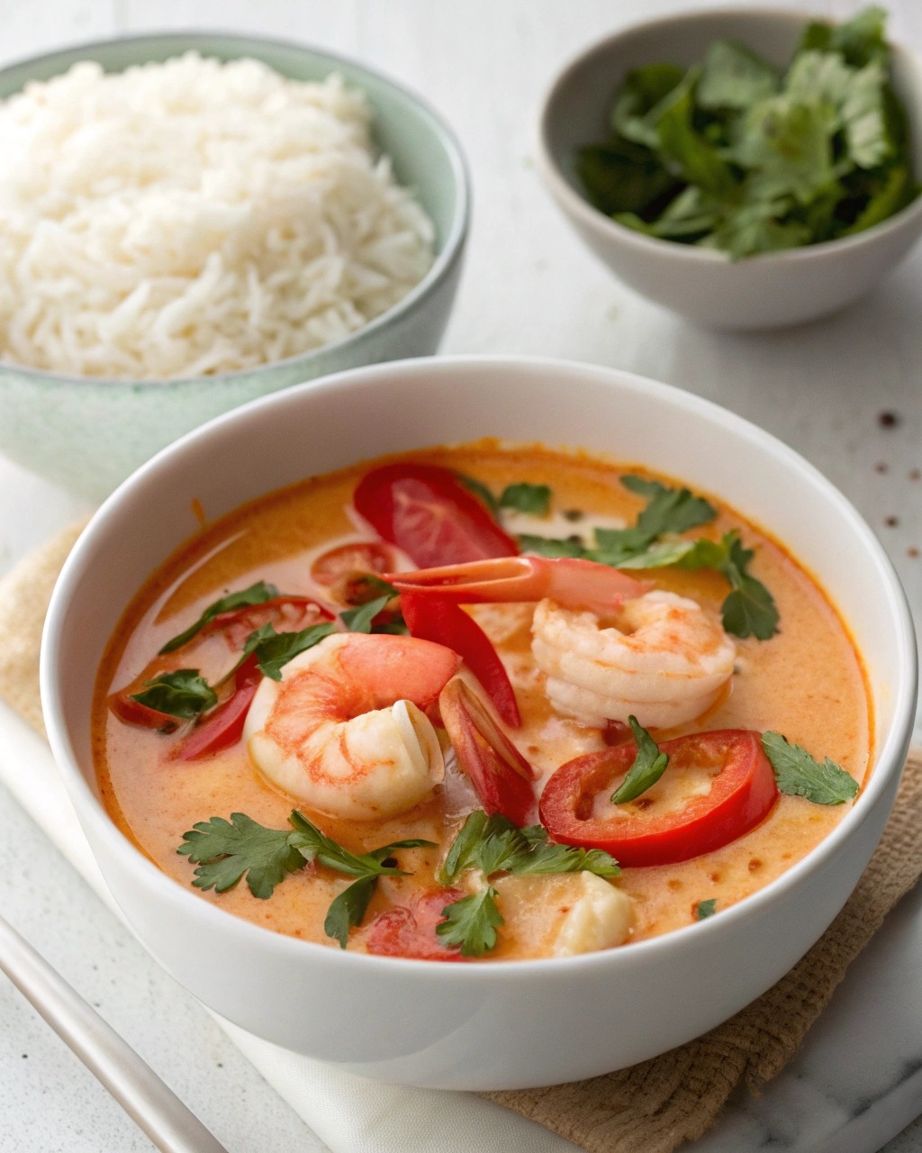 There’s something deeply comforting about a steaming bowl of Thai-inspired shrimp soup. It’s the kind of dish that warms you from the inside out — spicy, creamy, a little sweet, and citrusy all at once. It’s bold but not overwhelming, and light enough to keep you coming back for seconds.