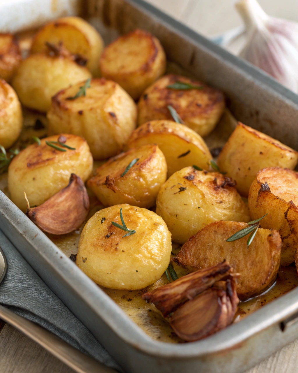One of the secrets behind truly perfect roast potatoes is the parboiling step. Gently simmering the potatoes softens them just enough so their edges become slightly rough when tossed. These rough edges crisp beautifully in the oven, creating the signature crunchy exterior everyone loves. It’s a simple technique, but it makes all the difference in achieving restaurant-quality results.