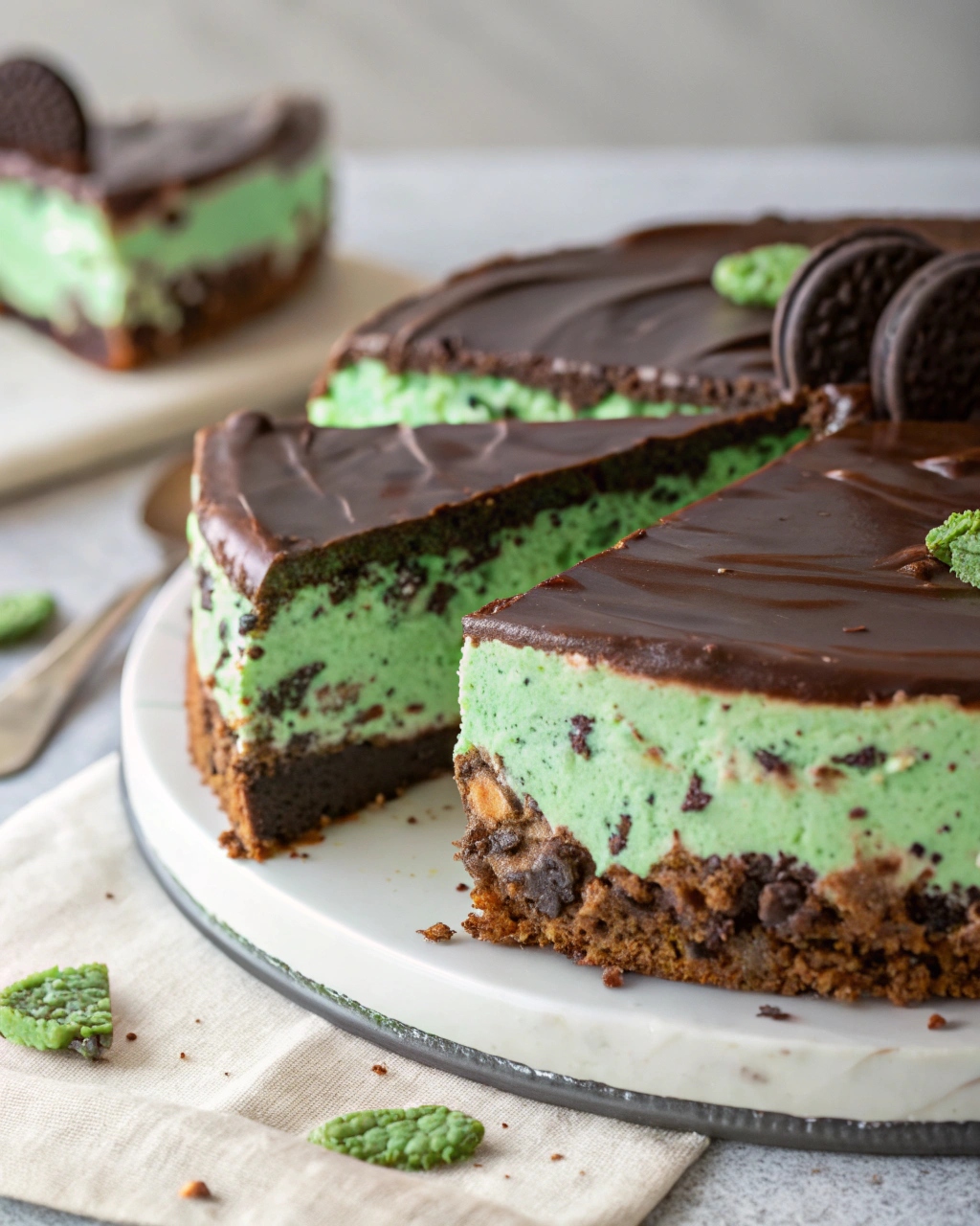Get full recipe >> Thin Mint Cheesecake Brownie Cake @ insidebrucrewlife.com