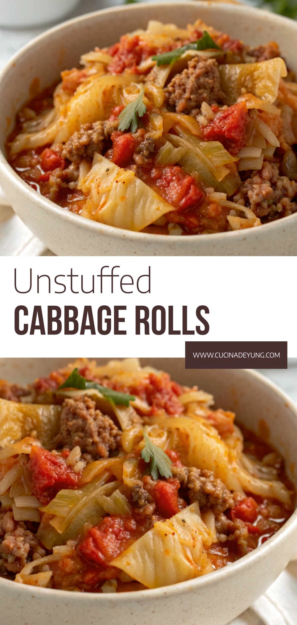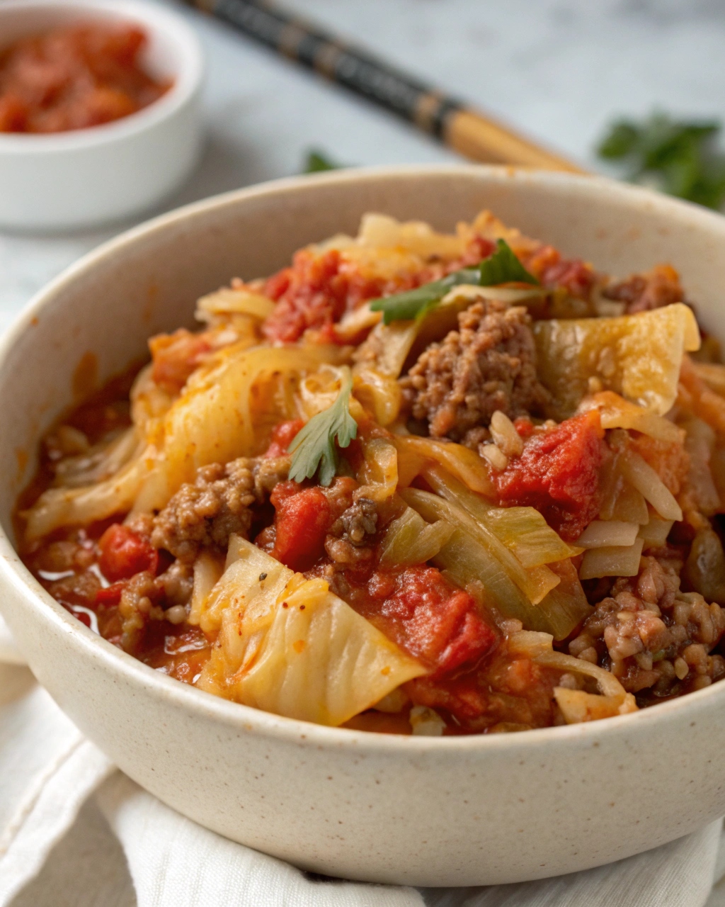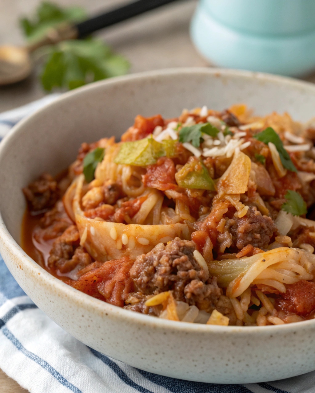 This unstuffed cabbage rolls recipe delivers all the classic flavors of traditional cabbage rolls without the extra work. Made with tender cabbage, seasoned ground beef, rice, and a rich tomato base, it’s a hearty, comforting dish that comes together easily in one pot.