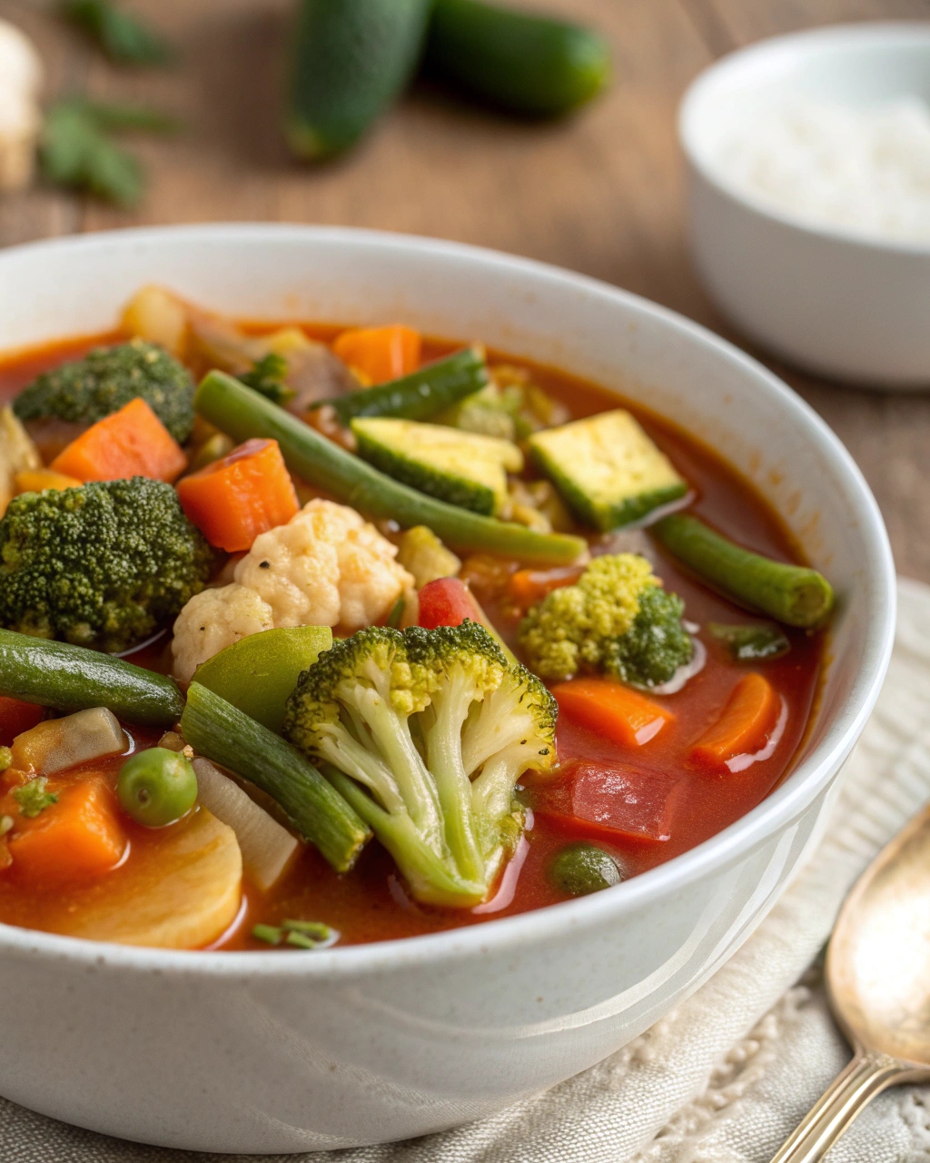 What makes this soup stand out is how incredibly satisfying it is despite being low in calories. Each ingredient plays an important role — carrots and cabbage add natural sweetness, green beans and broccoli bring texture and crunch, and zucchini adds a delicate flavor that soaks up the savory broth beautifully. Together, they create a perfectly balanced soup that’s both light and hearty.